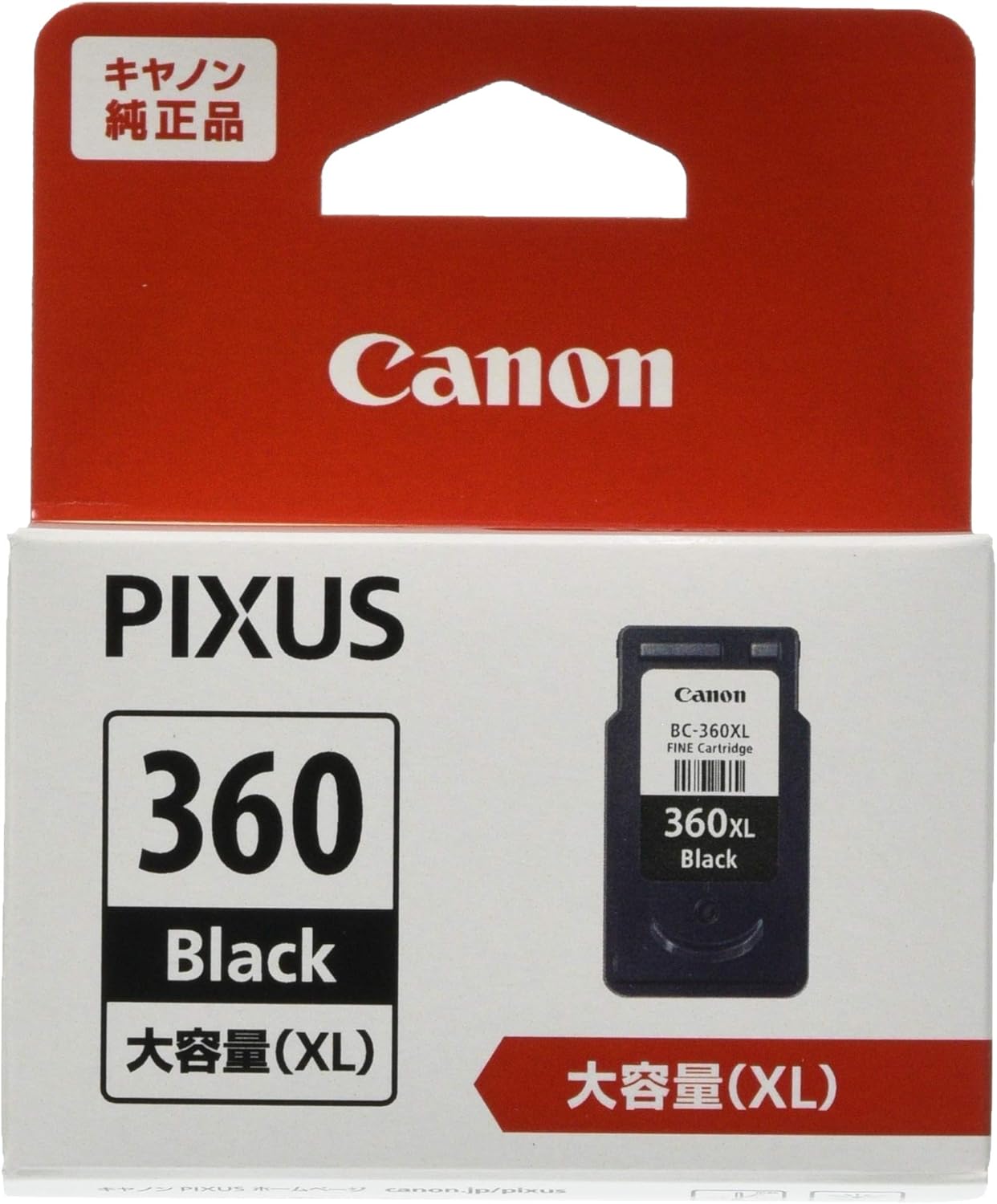 BC-360XLは、キヤノンが製造・販売する純正インクカートリッジ「FINEカートリッジ」シリーズのひとつです。製品の正式名称は「FINEカートリッジ BC-360XL ブラック」で、品番は3708C001、JANコードは4549292144529となっています。型番末尾の「XL」は「Extra Large」の略称で、通常容量のBC-360よりもインクの充填量が多い大容量タイプであることを意味しています。