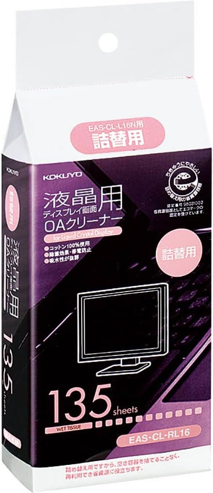 コクヨ EAS-CL-L16を継続して使う場合、詰め替えタイプ「EAS-CL-RL16」(135枚入り)の活用がおすすめです。空になったEAS-CL-L16のボトルを再利用できるため、廃プラスチックの削減につながる環境配慮型の運用が実現します。
